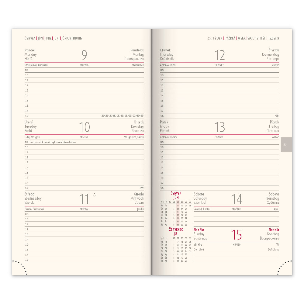 Kalendarium: 6-języczne tygodniowe od grudnia 2024 (CZ, SK, GB, DE, HU, RU)