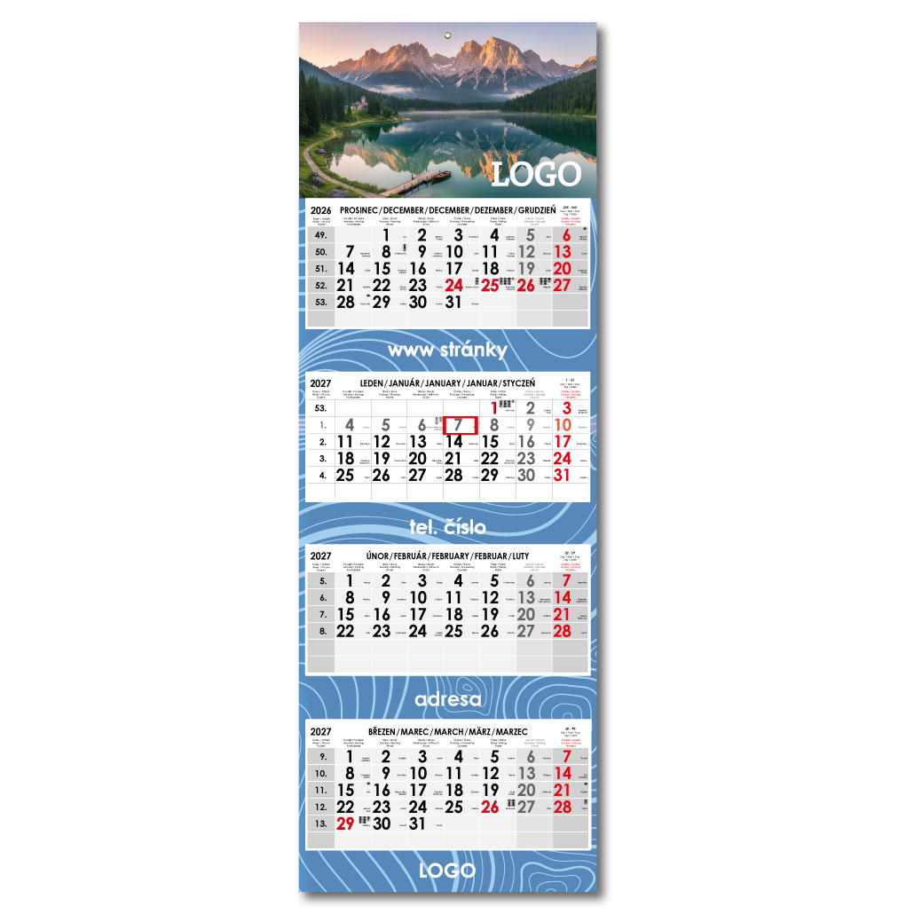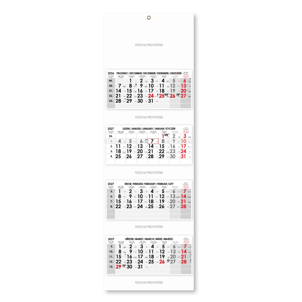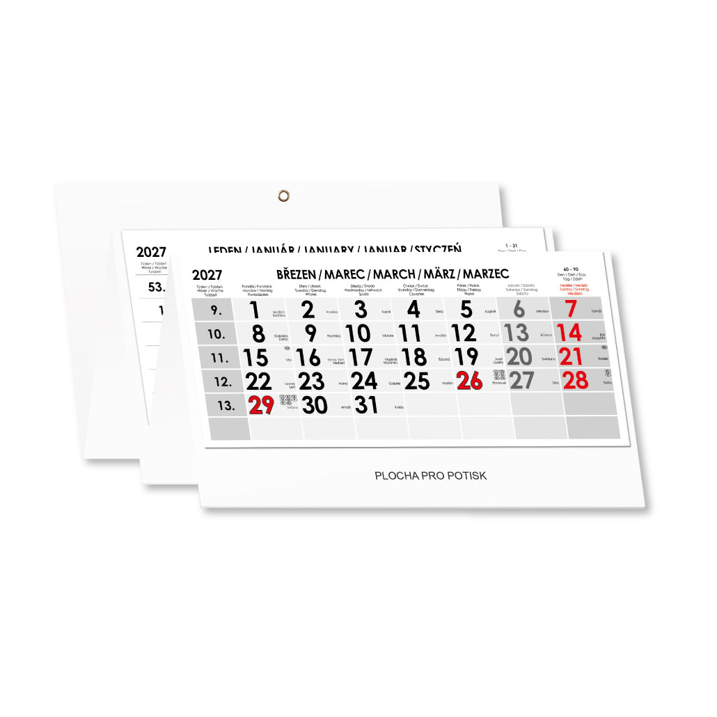 Czteromiesięczny kalendarz Kvatro składany czeski 2027 - szary