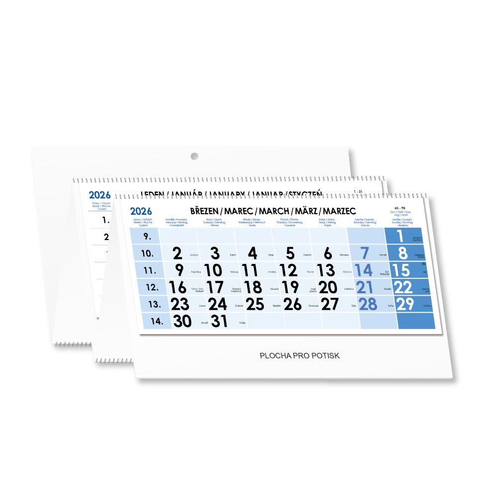 Czteromiesięczny kalendarz Kvatro składany czeski ze spiralą 2026 - niebieski