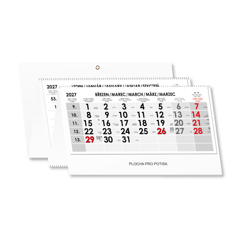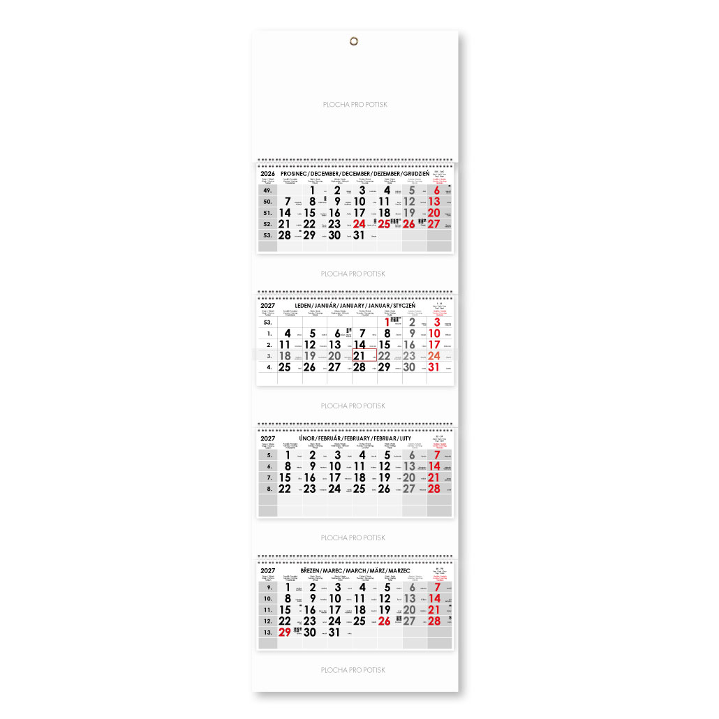 Czteromiesięczny kalendarz Kvatro składany czeski ze spiralą 2027 - szary