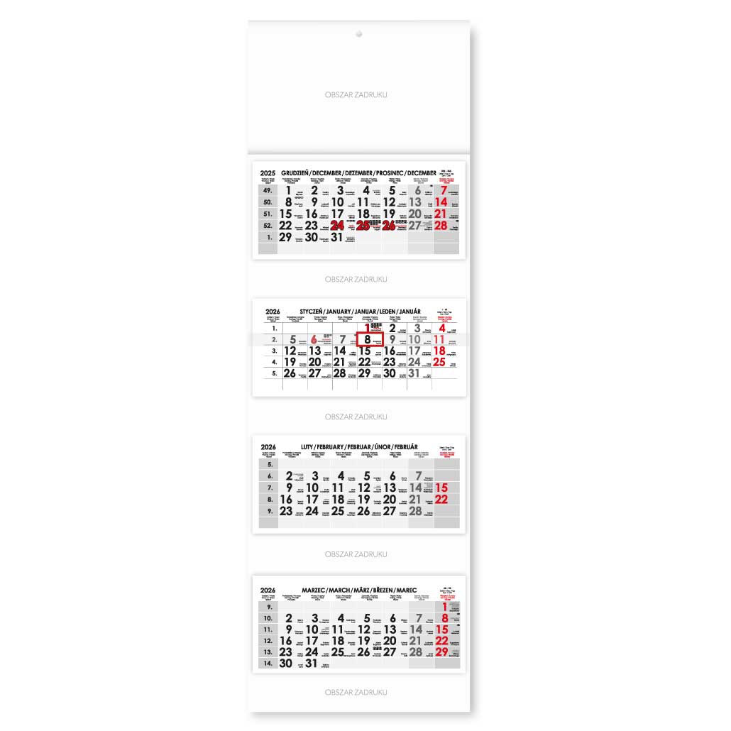 Czteromiesięczny kalendarz Kvatro składany polski 2026 - szary