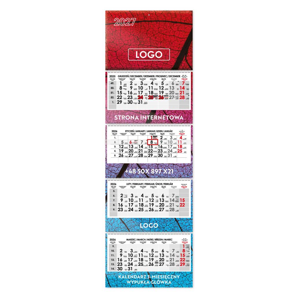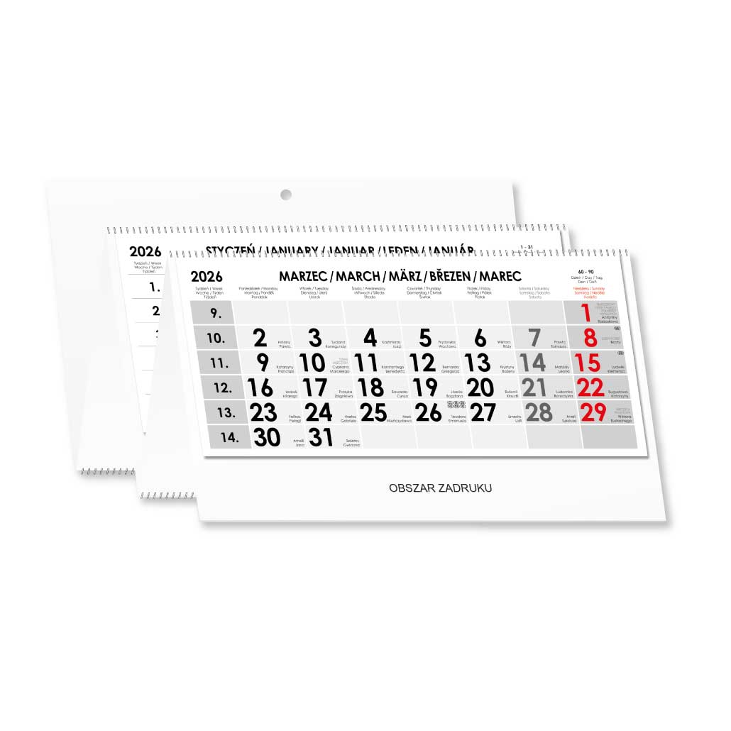 Czteromiesięczny kalendarz Kvatro składany polski ze spiralą 2026 - szary