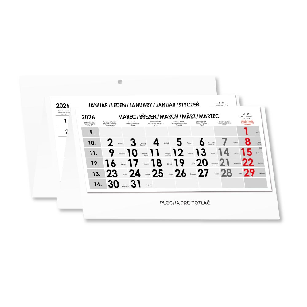 Czteromiesięczny kalendarz Kvatro składany slowacki 2026 - szary
