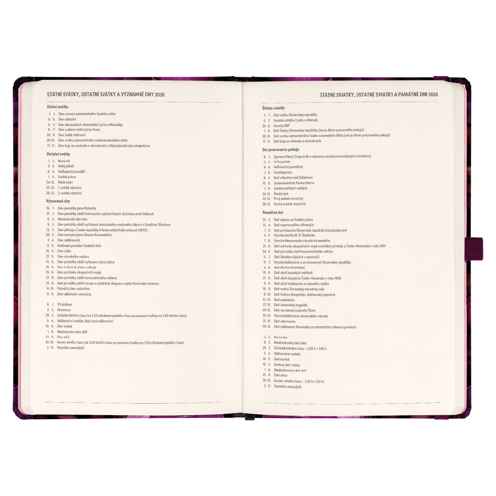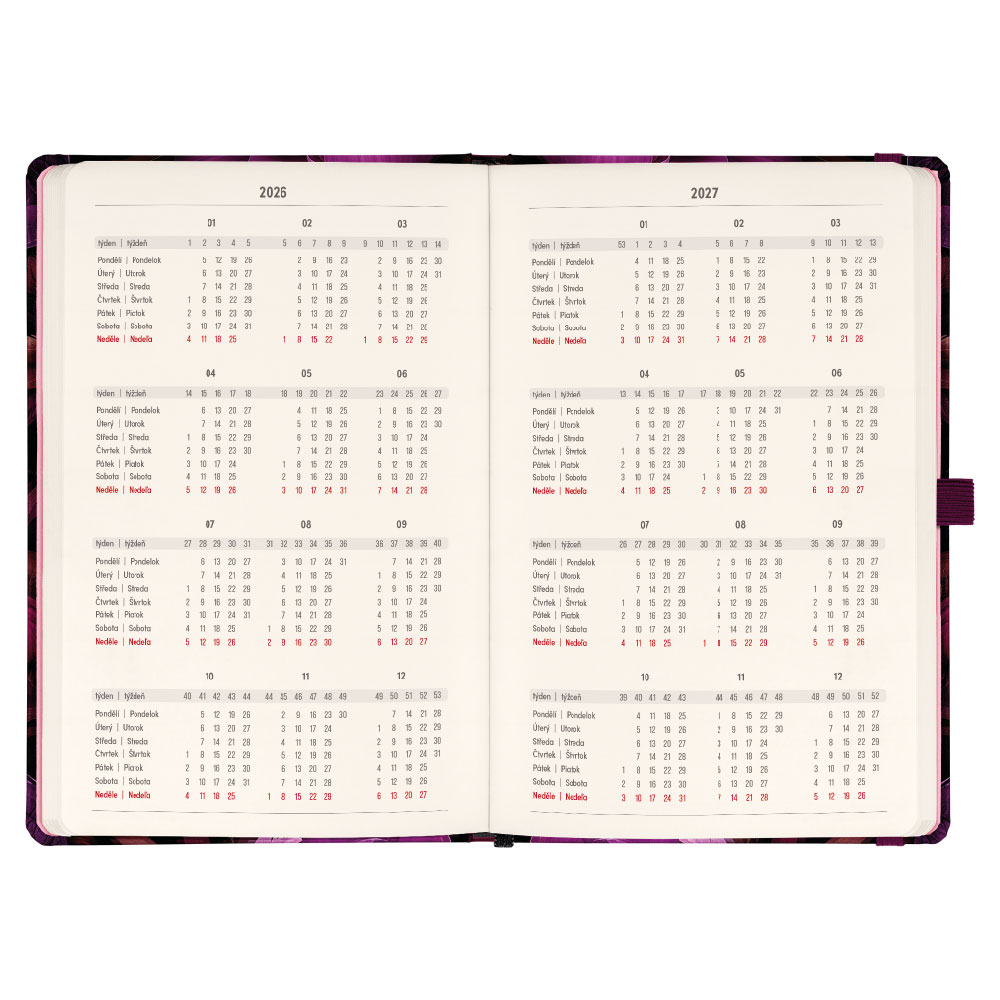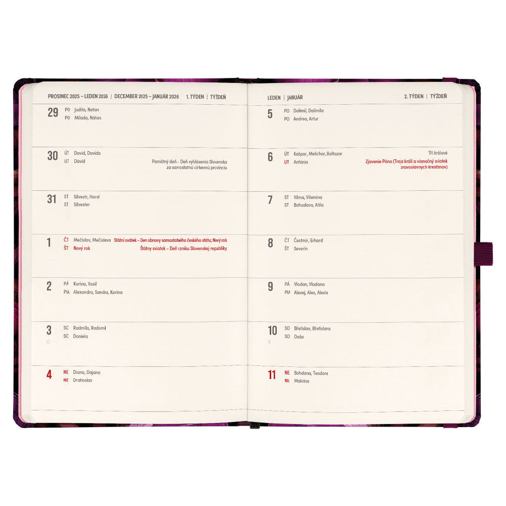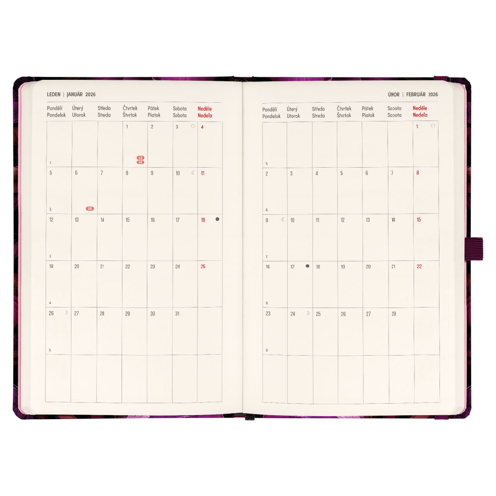 Dwutygodniowy kalendarz książkowy/notatnik 2026 A5 Fioletowe kwiaty