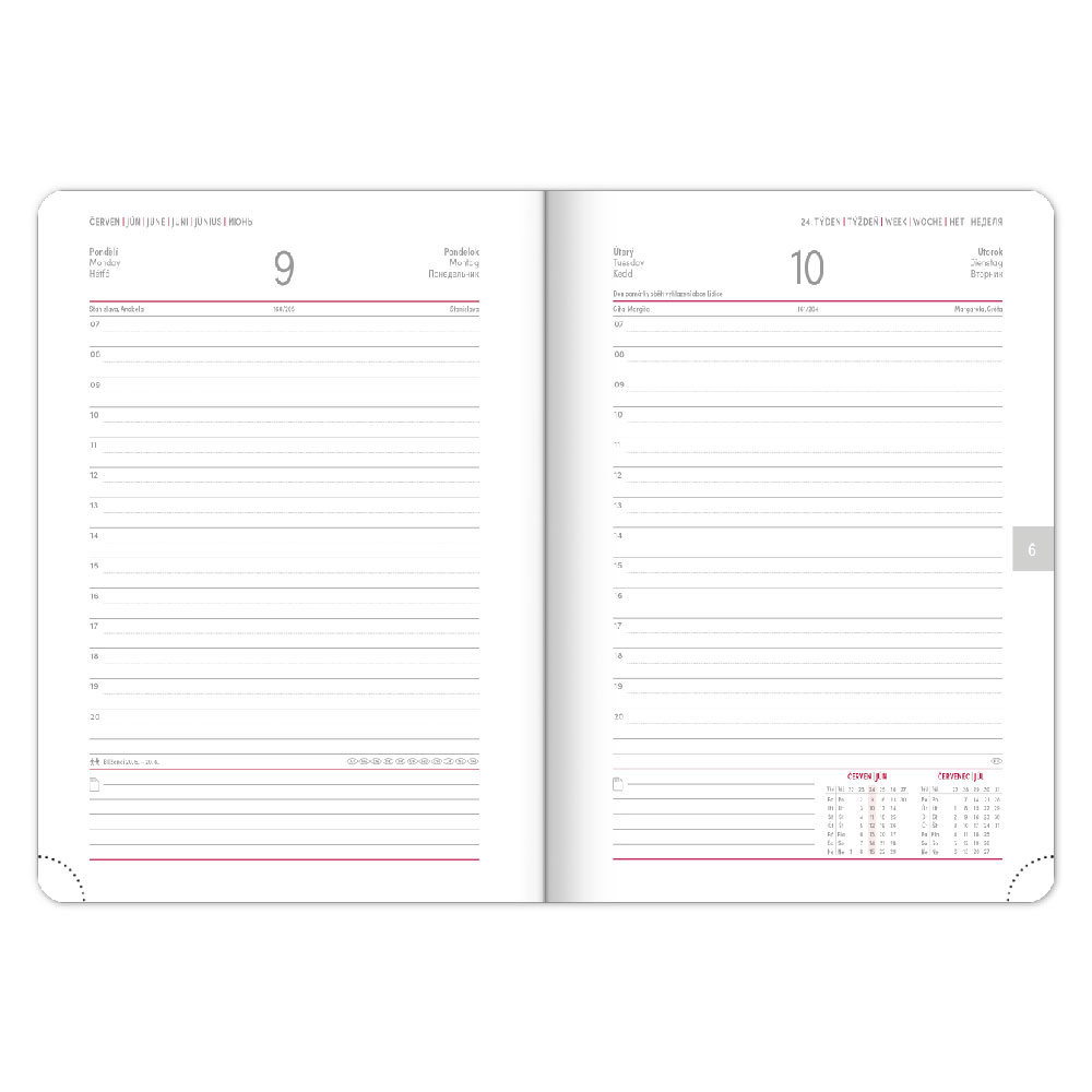 Kalendarz: 6-języczne dzienne od grudnia 2024 (CZ, SK, GB, DE, HU, RU)