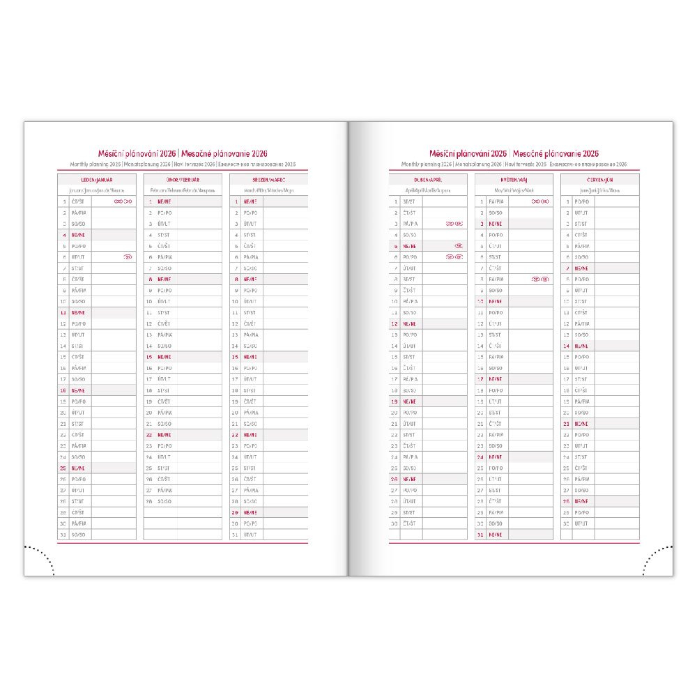 planowanie roczne 2026 i 2027, kalendarz planowania pracy, mapa Czech i SK,