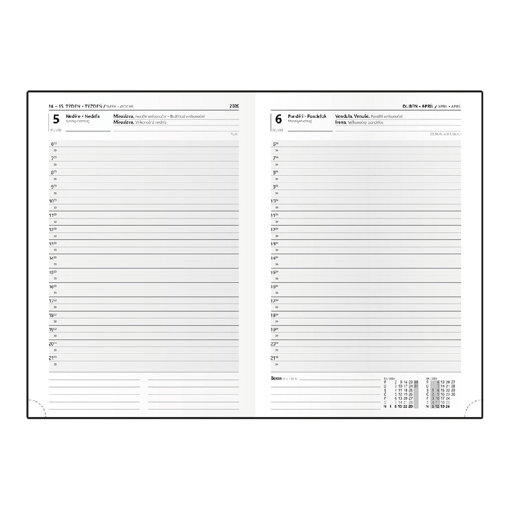 Kalendarz: dzienny nominalny czeski i słowacki (sobota/niedziela osobno na stronie)