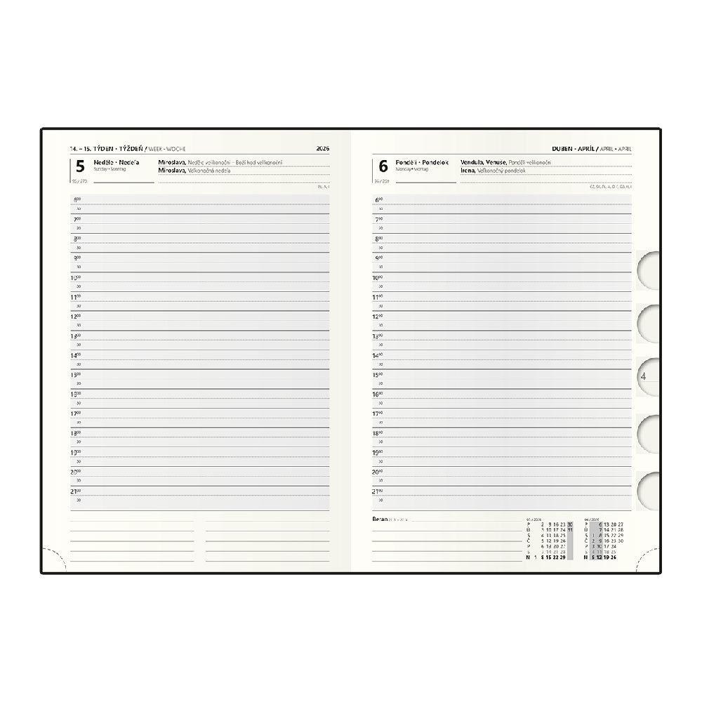 Kalendarz: dzienny nominalny czeski i słowacki (sobota/niedziela osobno na stronie)