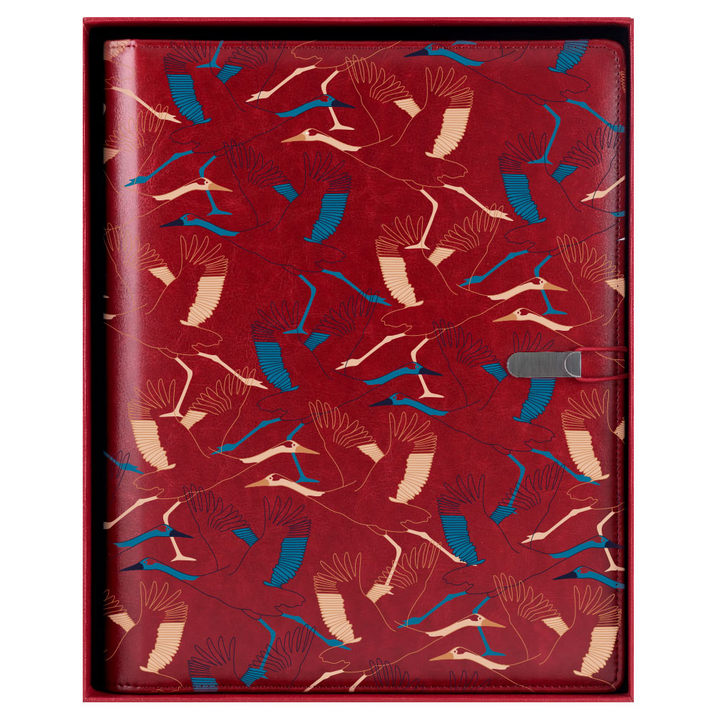 GEP DESIGN skórzana teczka konferencyjna w bordo pudełku prezentowym - Żuraw z czystym blokiem