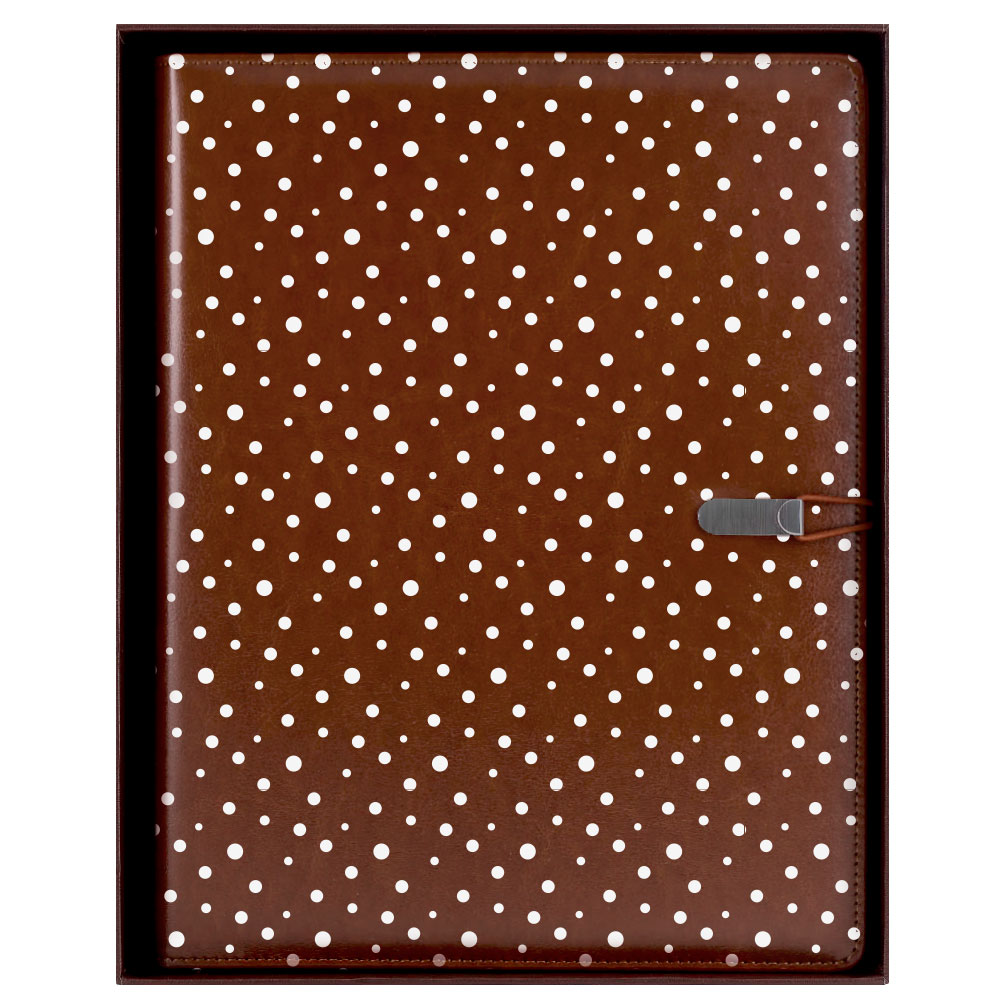 Gep skórzana teczka konferencyjna na dokumenty w brązowym pudełku prezentowym - kropki z czystym blokiem