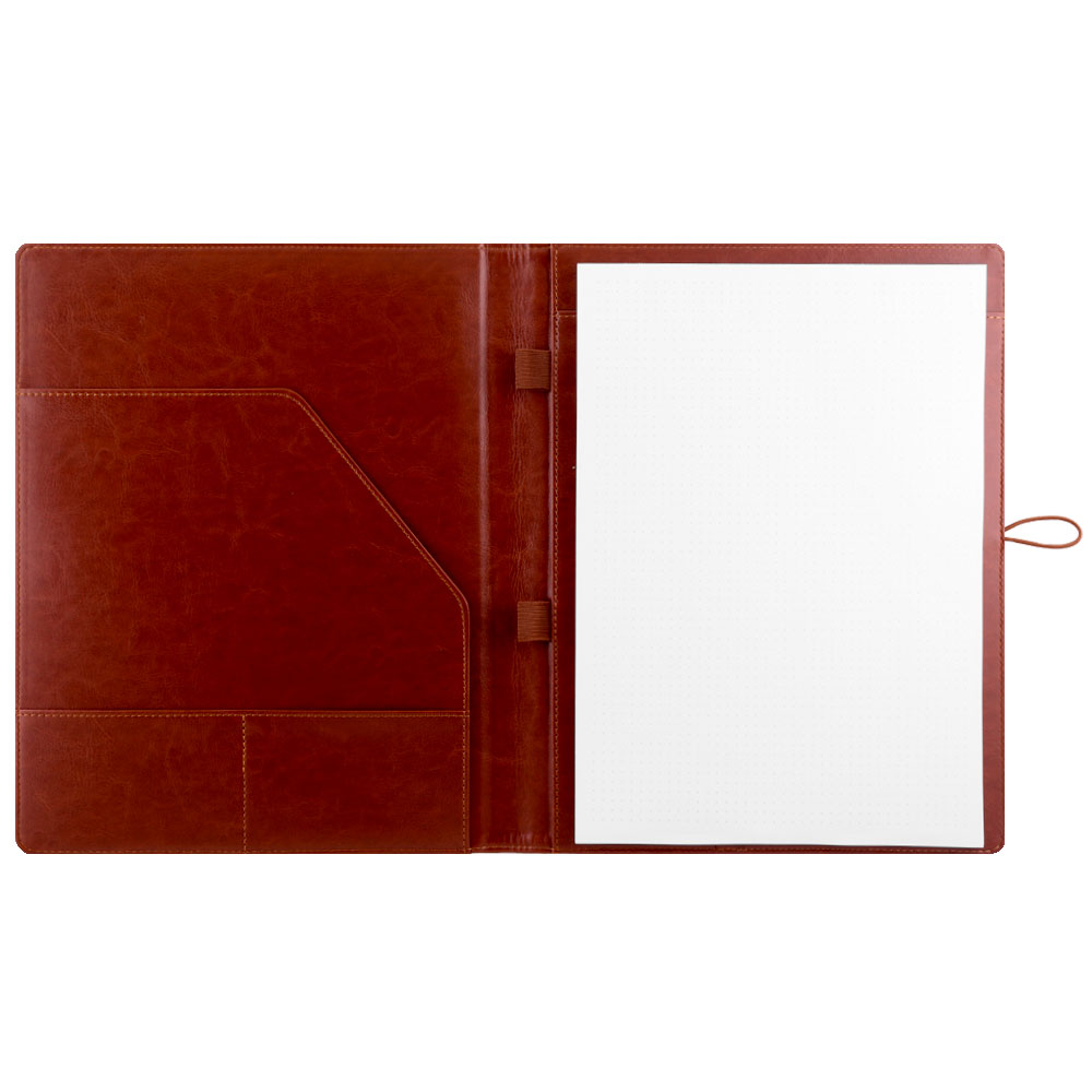 Gep skórzana teczka konferencyjna na dokumenty w brązowym pudełku prezentowym - kropki z kropkowanym blokiem