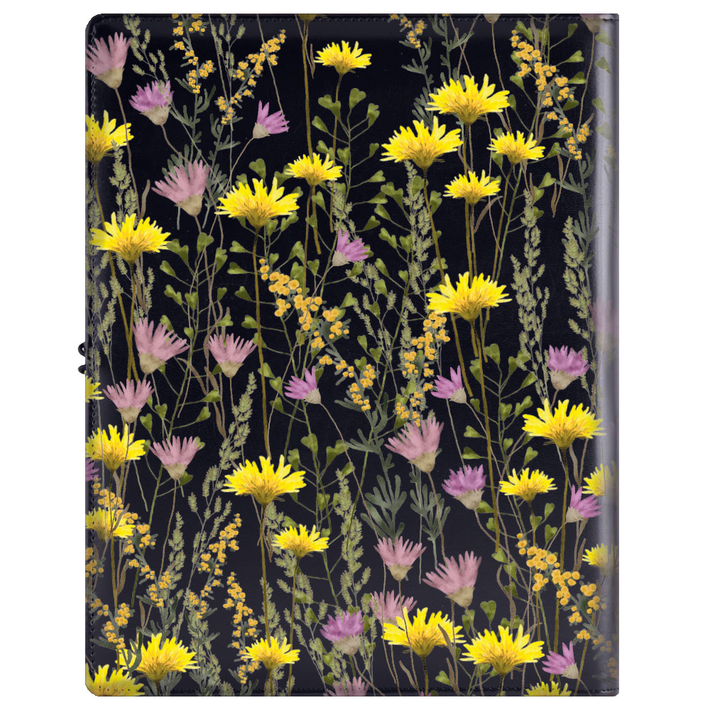 Gep skórzana teczka konferencyjna na dokumenty w czarnym pudełku prezentowym - Łąka z kropkowanym blokiem