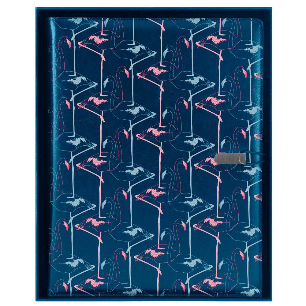 GEP DESIGN skórzana teczka konferencyjna w niebieskim pudełku prezentowym - Flamingo z liniowanym blokiem