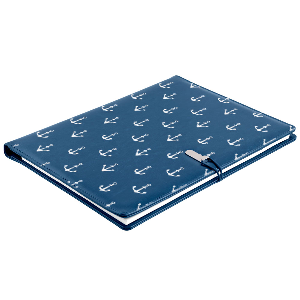 Gep skórzana teczka konferencyjna na dokumenty w niebieskim pudełku prezentowym - marynarski z czystym blokiem