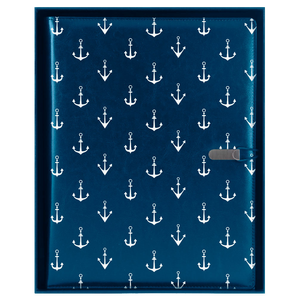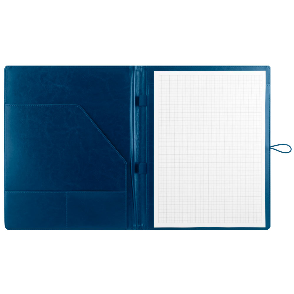Gep skórzana teczka konferencyjna na dokumenty w niebieskim pudełku prezentowym - marynarski z kratkowanym blokiem