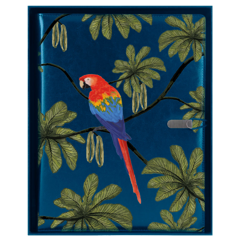 GEP DESIGN skórzana teczka konferencyjna w niebieskim pudełku prezentowym - Papuga z kropkowanym blokiem