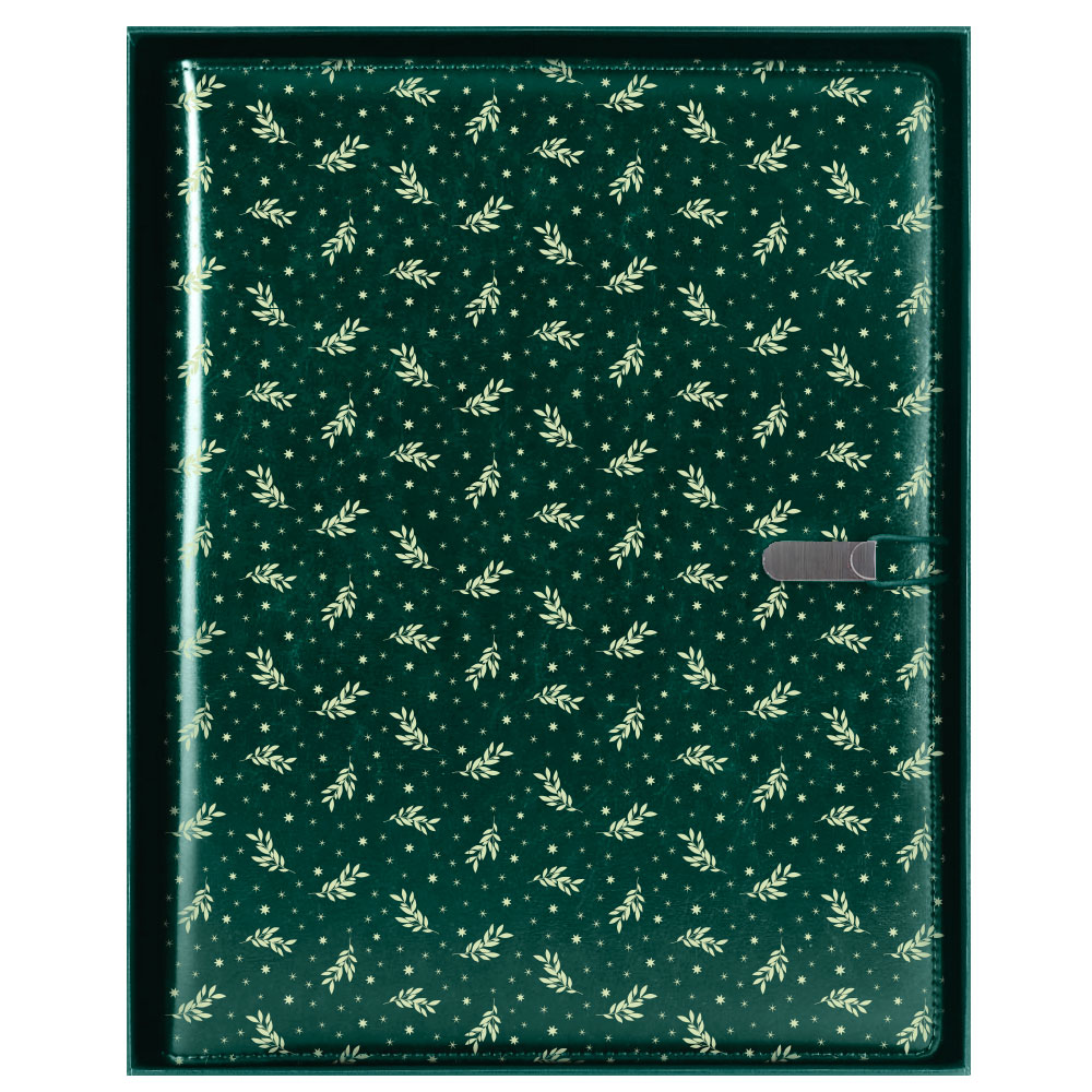 GEP DESIGN skórzana teczka konferencyjna w zielonym pudełku prezentowym - gałązki z liniowanym blokiem