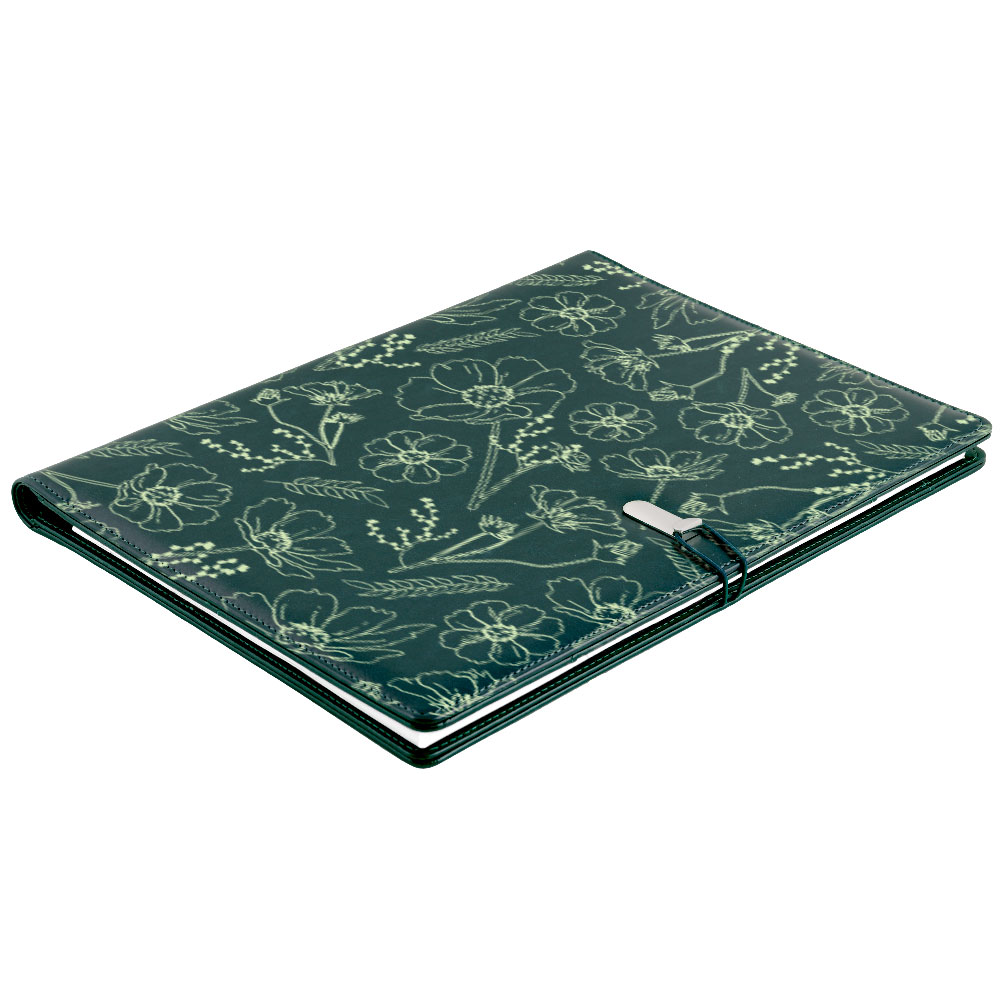 Gep skórzana teczka konferencyjna na dokumenty w zielonym pudełku prezentowym - kwiatki z czystym blokiem