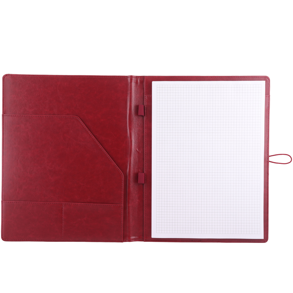 Gep skórzana teczka konferencyjna w bordovym pudełku prezentowym z kratkowanym blokiem