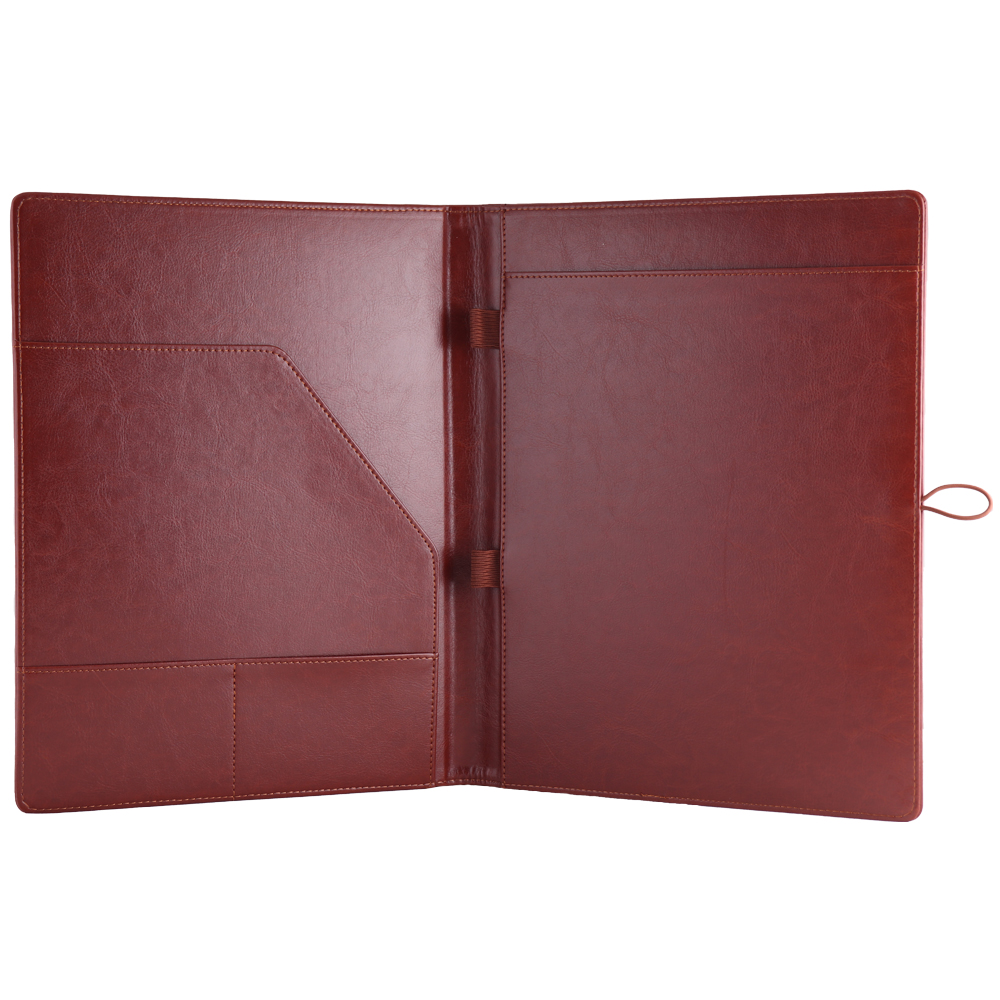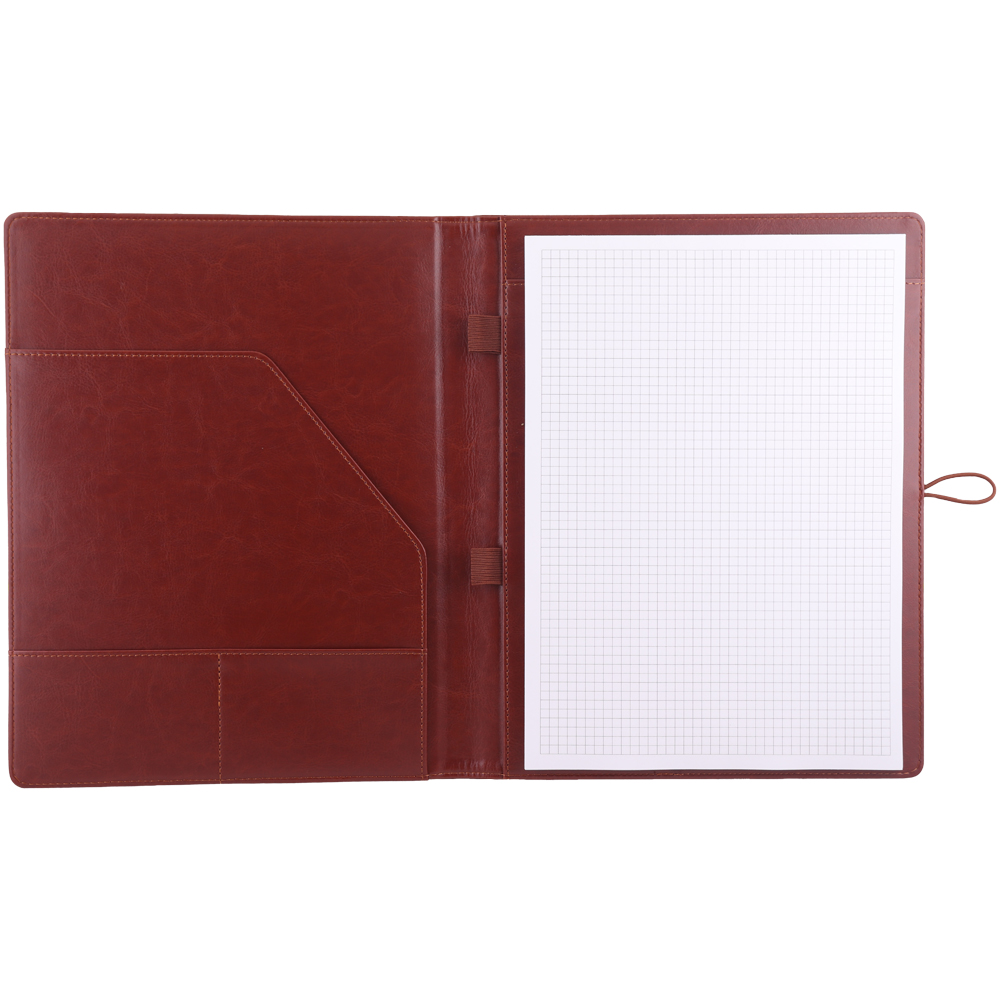 Gep skórzana teczka konferencyjna w brązowym pudełku prezentowym z kratkowanym blokiem