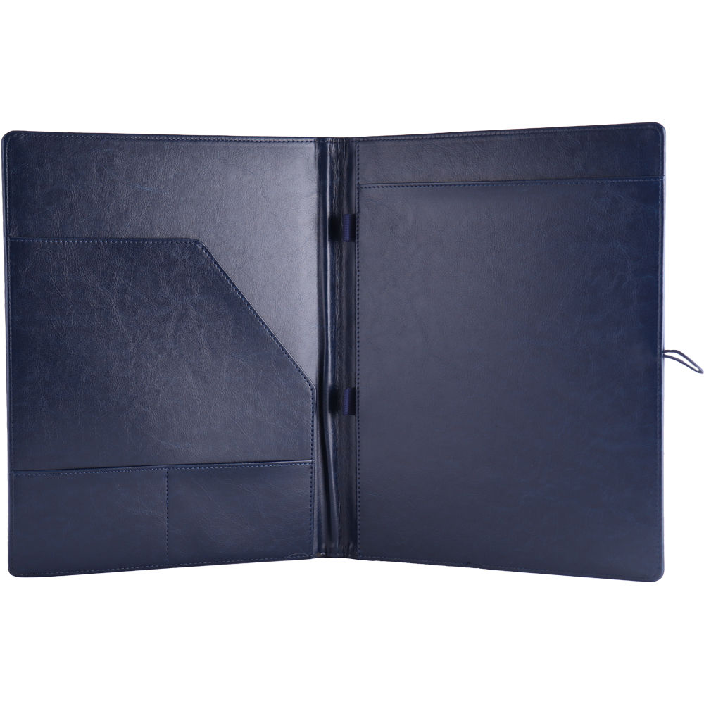Gep skórzana teczka konferencyjna w niebieskim pudełku prezentowym z kratkowanym blokiem