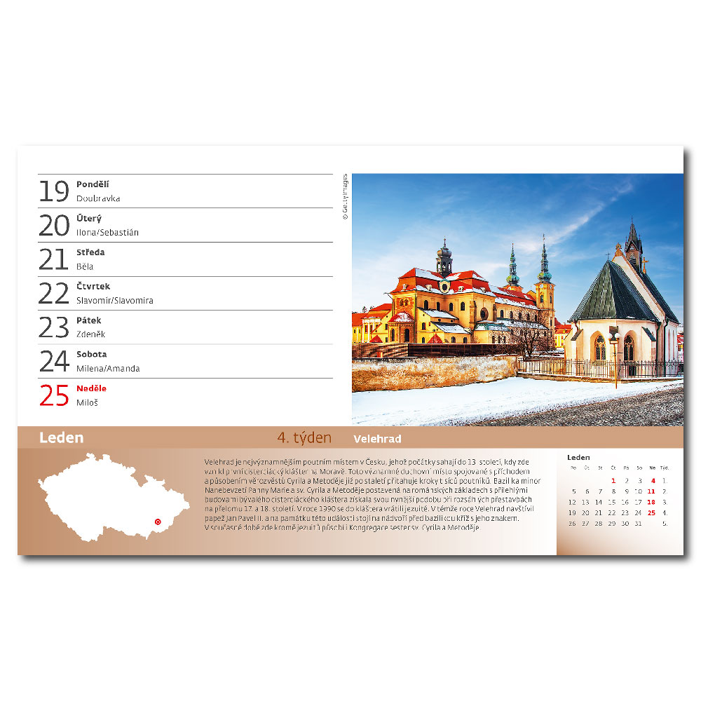 Kalendarz biurkowy 2026 - 55 najlepszych turystycznych miejsc, Czechy i Morawy