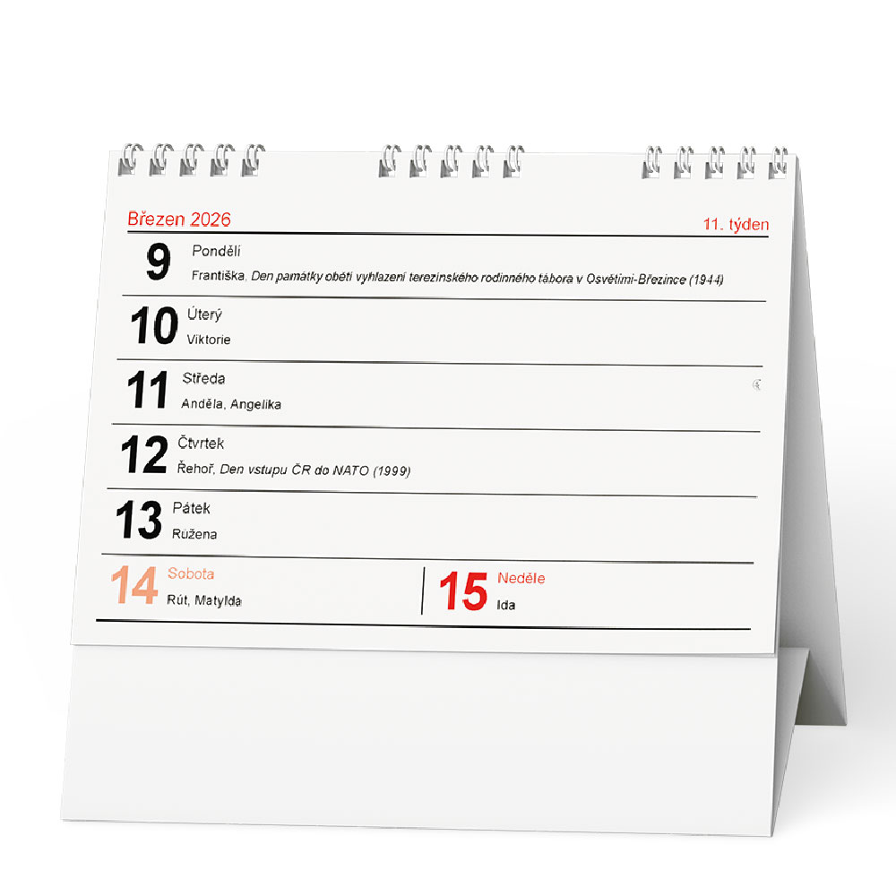 Kalendarz: Czeski kalendarz tygodniowy imienny