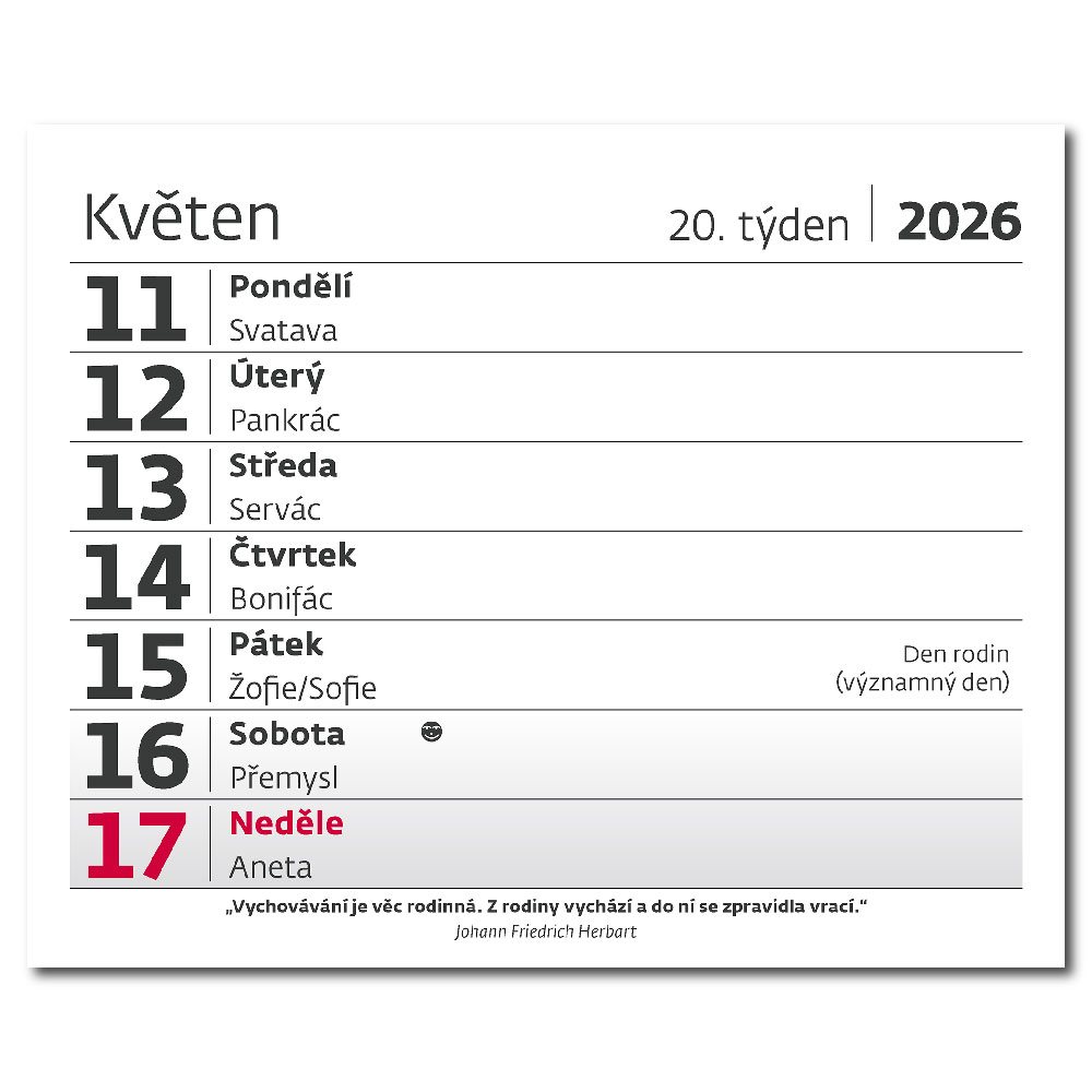 Kalendarium: Czeskie tygodniowe z imionami i cytatami