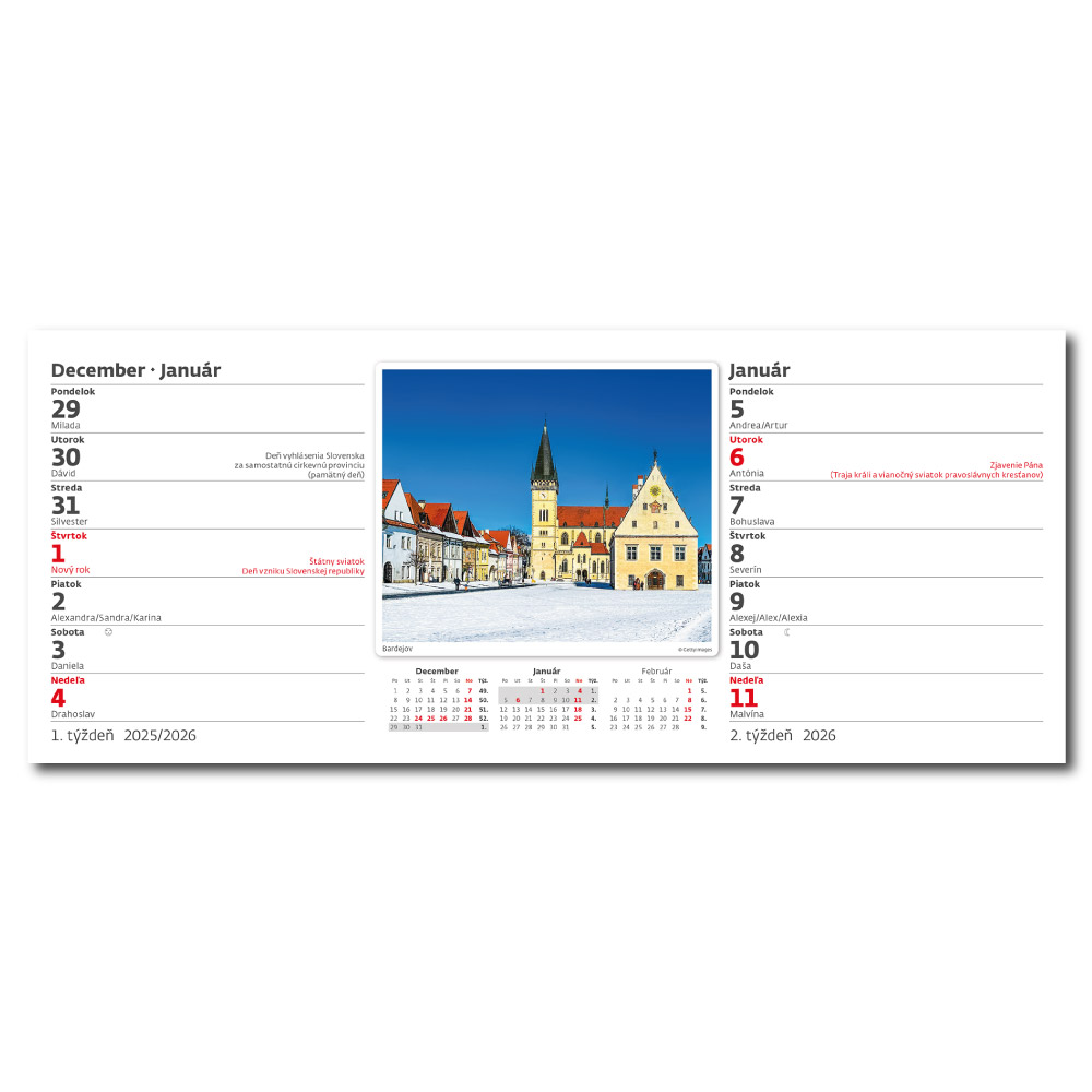 Kalendarz biurkowy 2026 - Miasta Słowacji