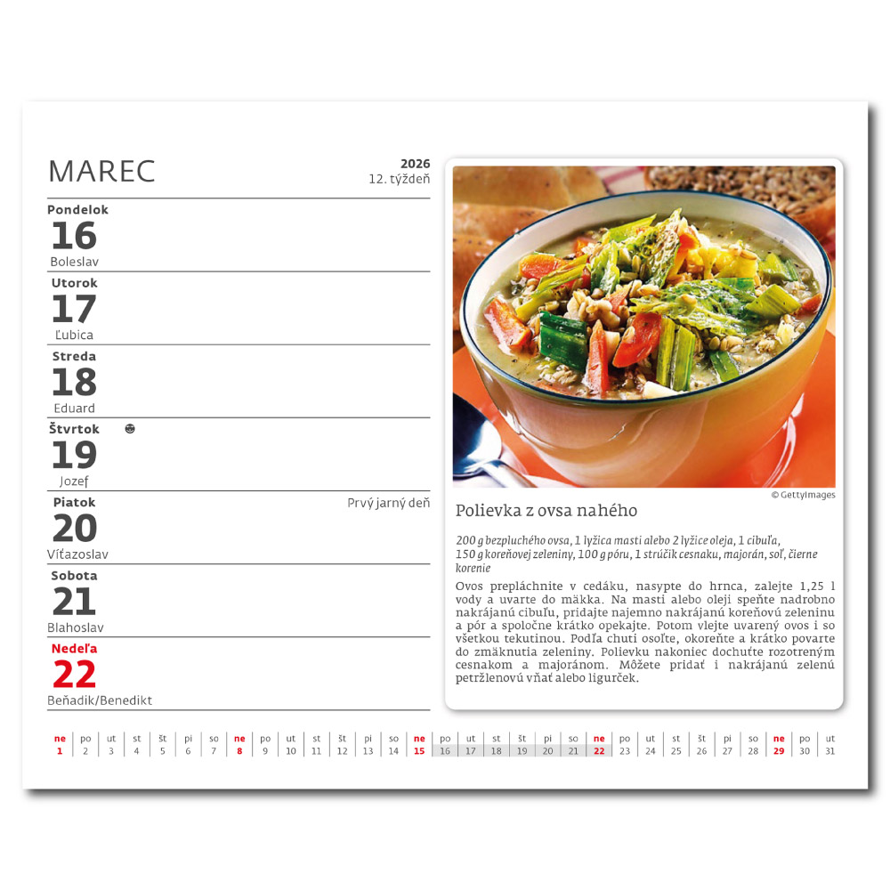 Kalendarz: Słowacki tygodniowy wiersz nominalny