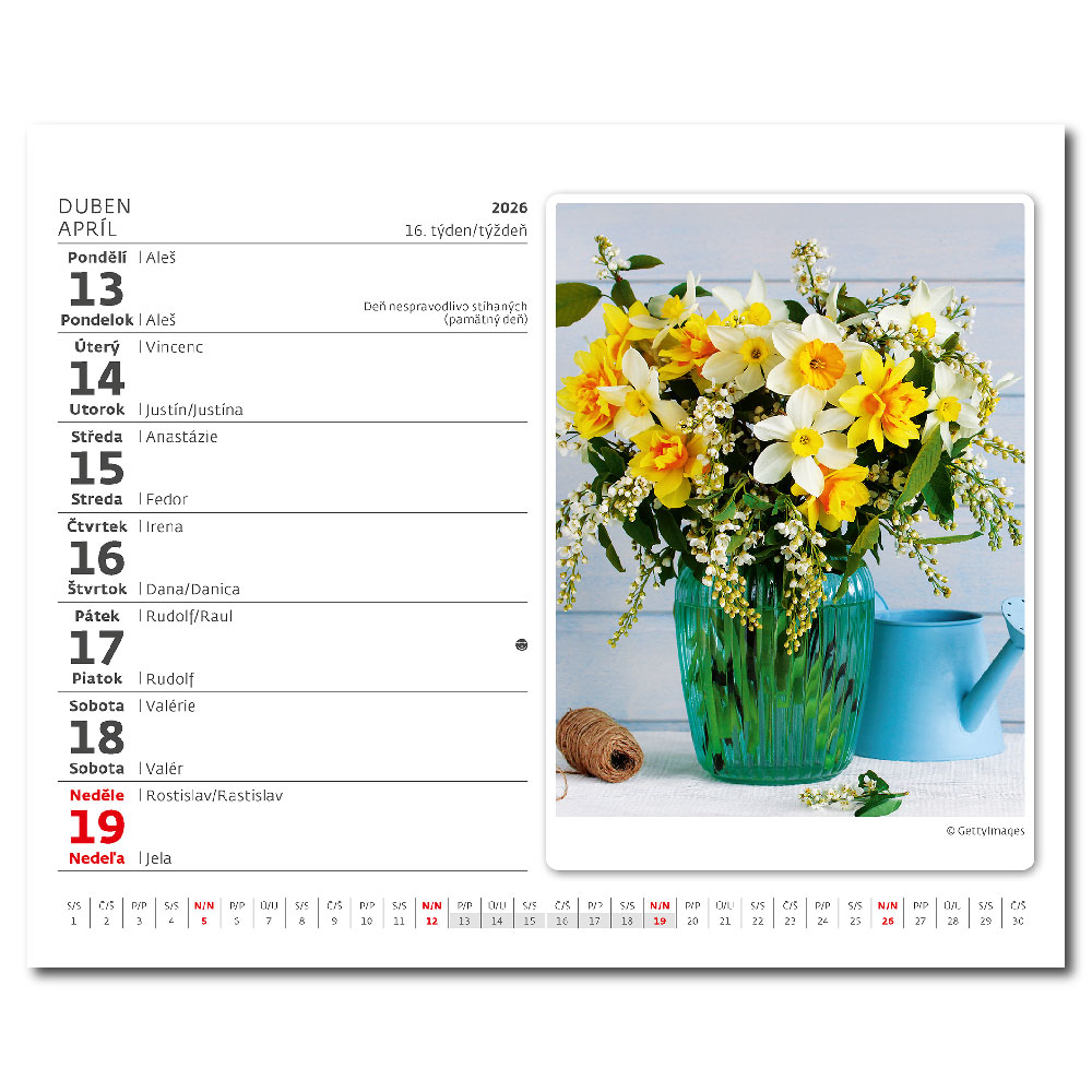 Kalendarium: Czeskie/słowackie tygodniowe z imionami