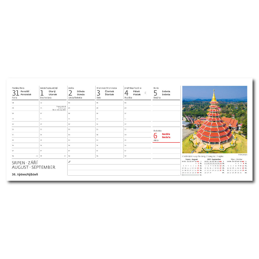 Kalendarium: Czeskie/słowackie tygodniowe z imionami