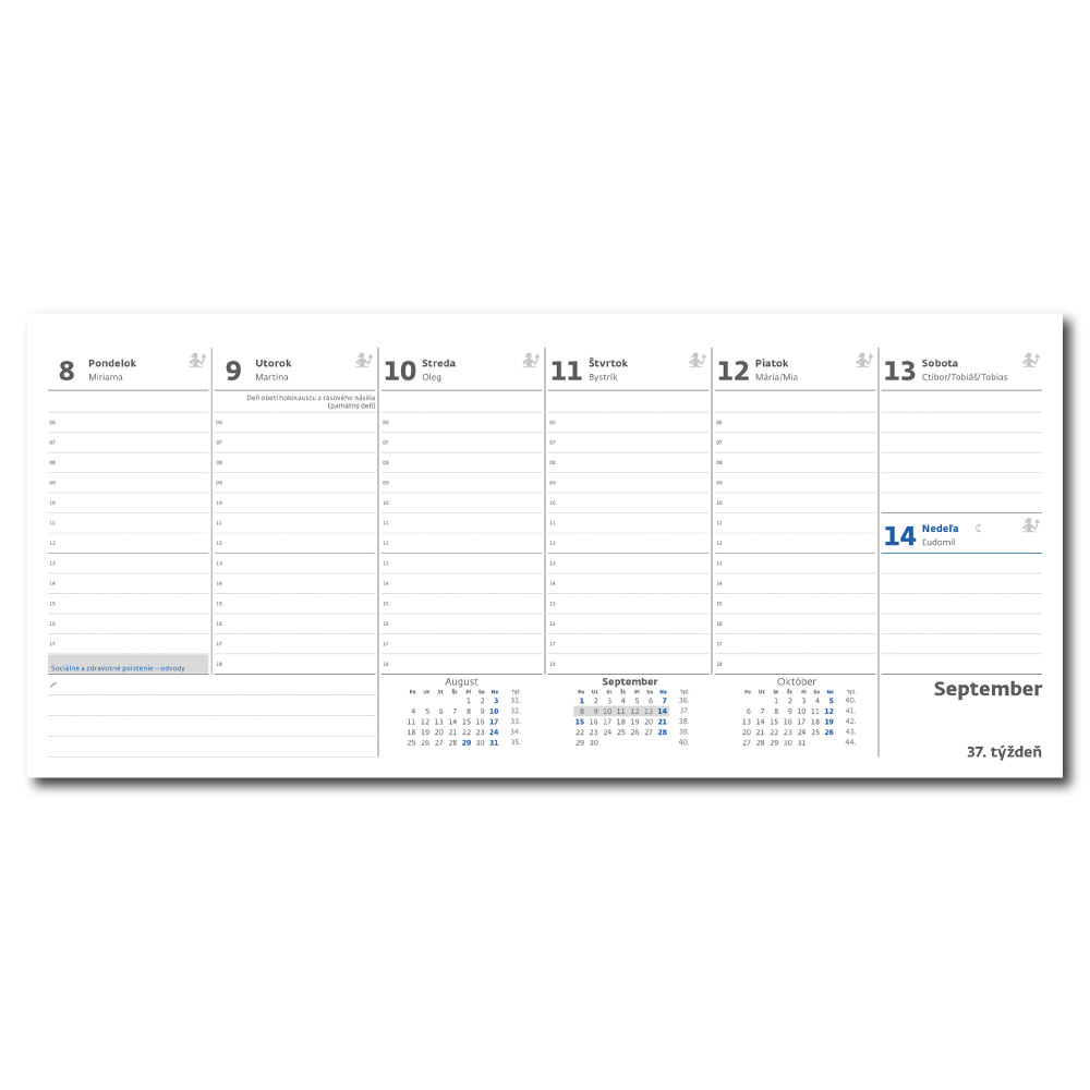 Kalendarz: Słowacki tygodniowy kolumnowy nominalny
