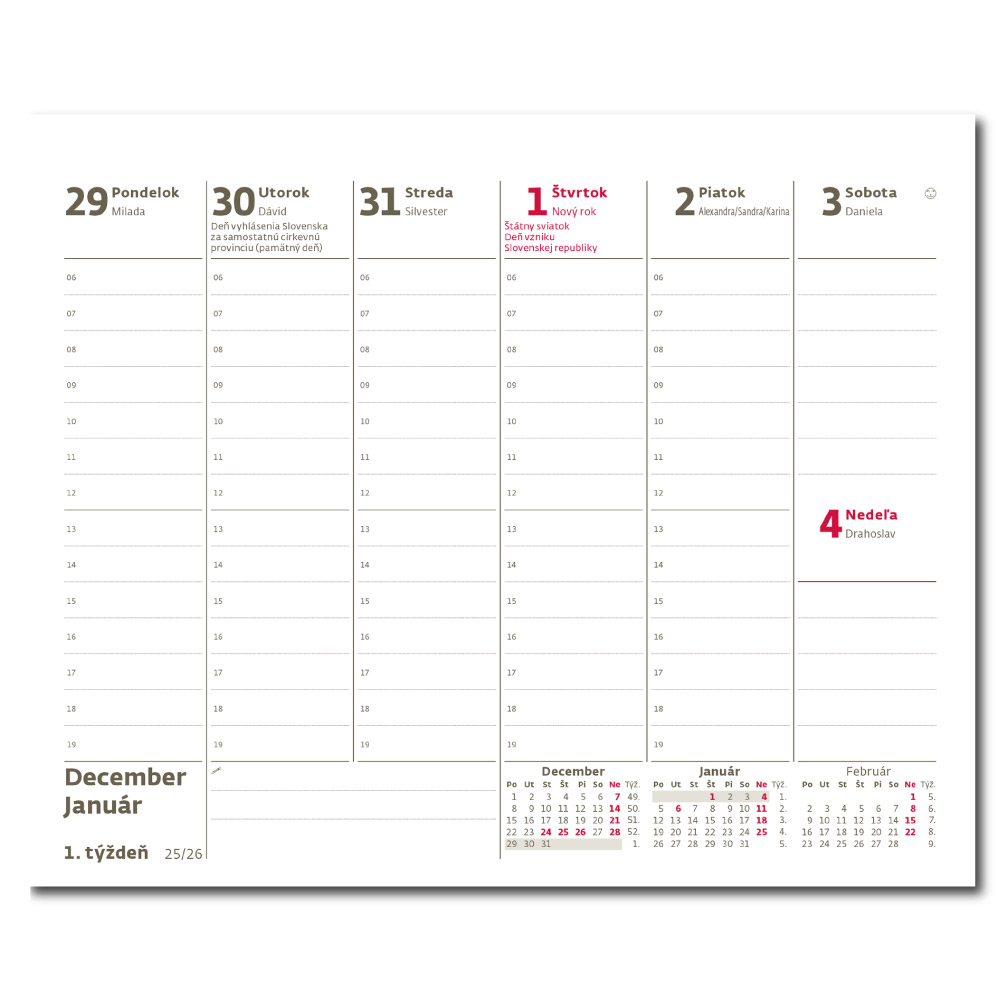 Kalendarz: Słowacki tygodniowy kolumnowy nominalny