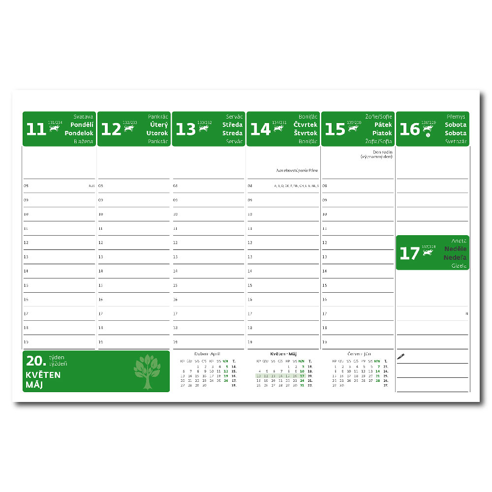Kalendarium: Czeskie/słowackie tygodniowe z imionami