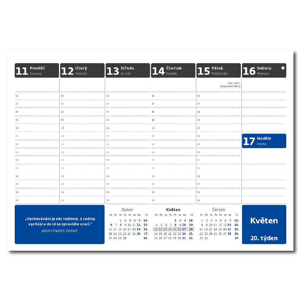 Kalendarium: Czeskie tygodniowe z imionami