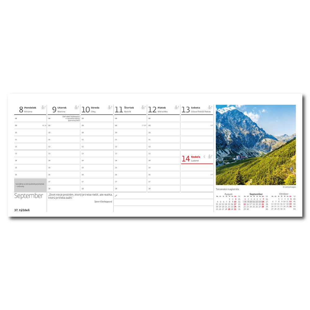 Kalendarz: Słowacki tygodniowy kolumnowy nominalny