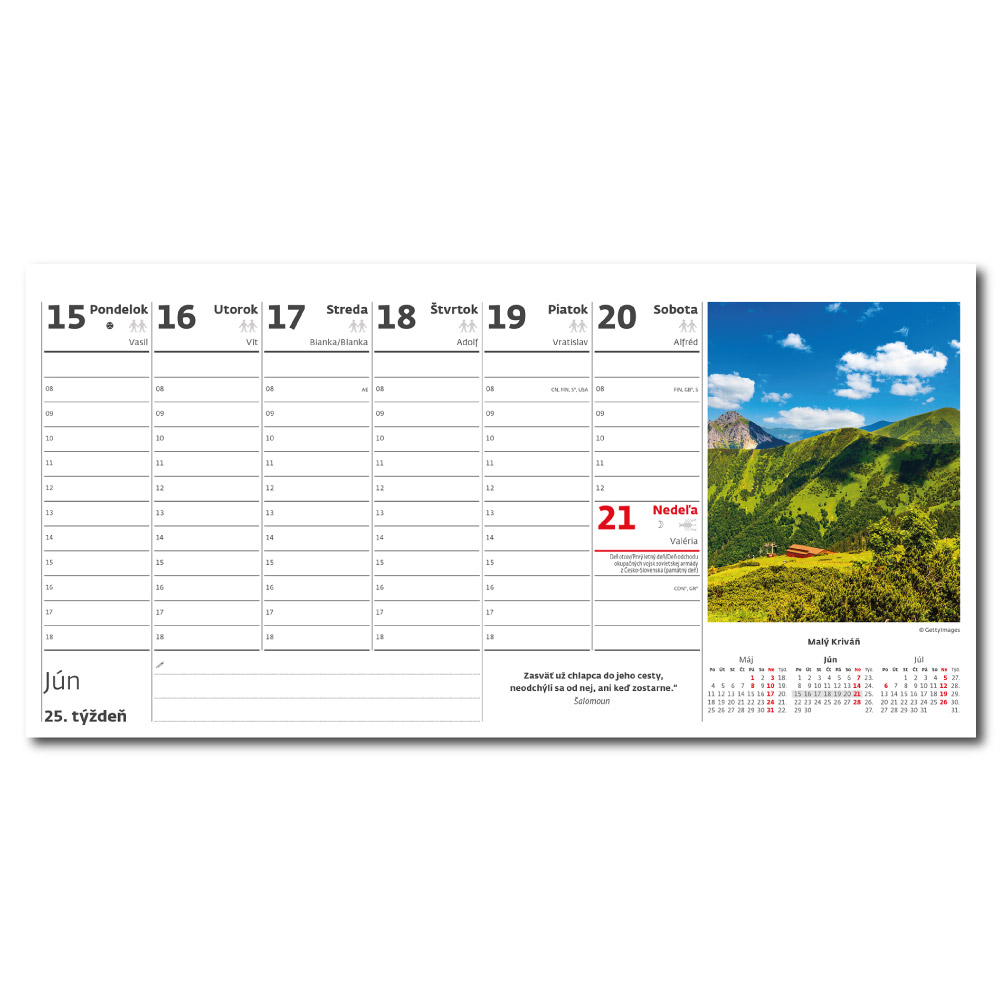 Kalendarz: Słowacki tygodniowy kolumnowy nominalny