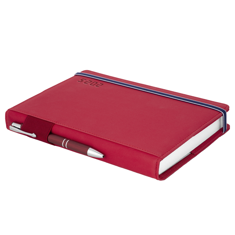 Kalendarz książkowy AMOS dzienny A5 2025 polski - czerwony/niebieska gumka