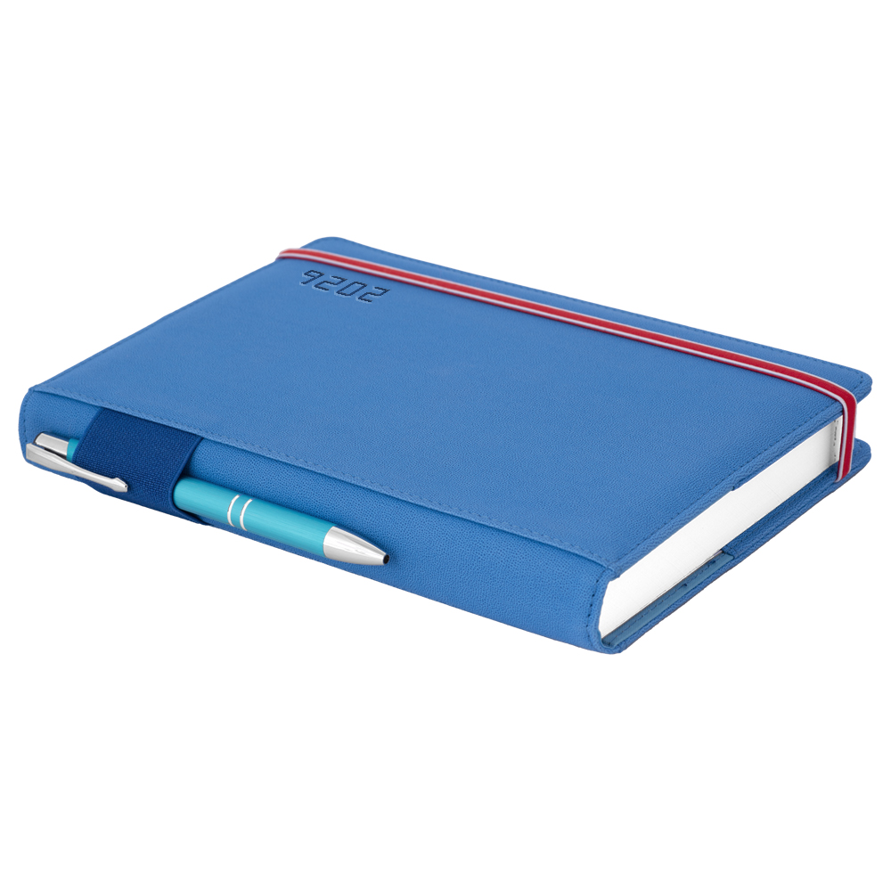 Kalendarz książkowy AMOS dzienny A5 2026 słowacki?? - niebieski/czerwona gumka
