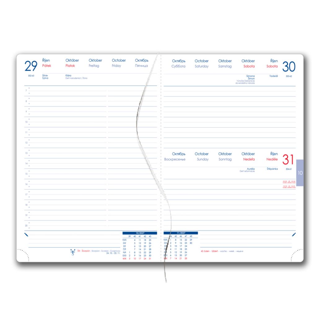 Kalendarz książkowy AMOS dzienny A5 2027 czeski - niebieski/czerwona gumka