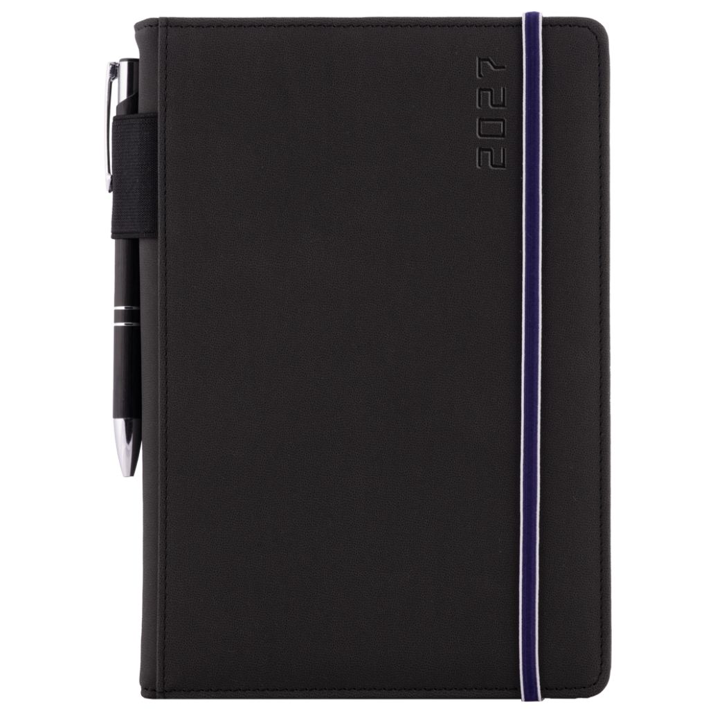 Kalendarz książkowy AMOS tygodniowy A5 2027 czeski - czarny/niebieska gumka