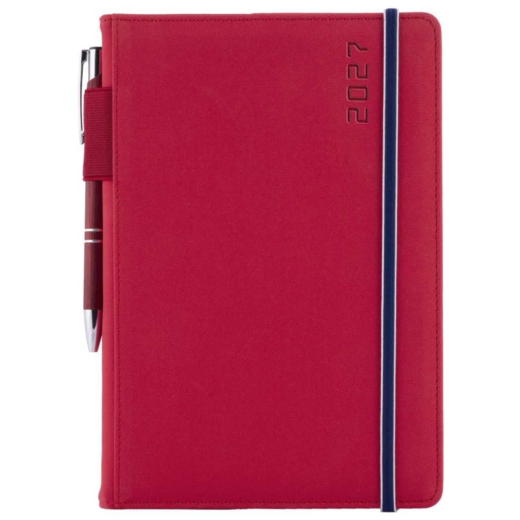 Kalendarz książkowy AMOS tygodniowy A5 2027 czeski - czerwony/niebieska gumka