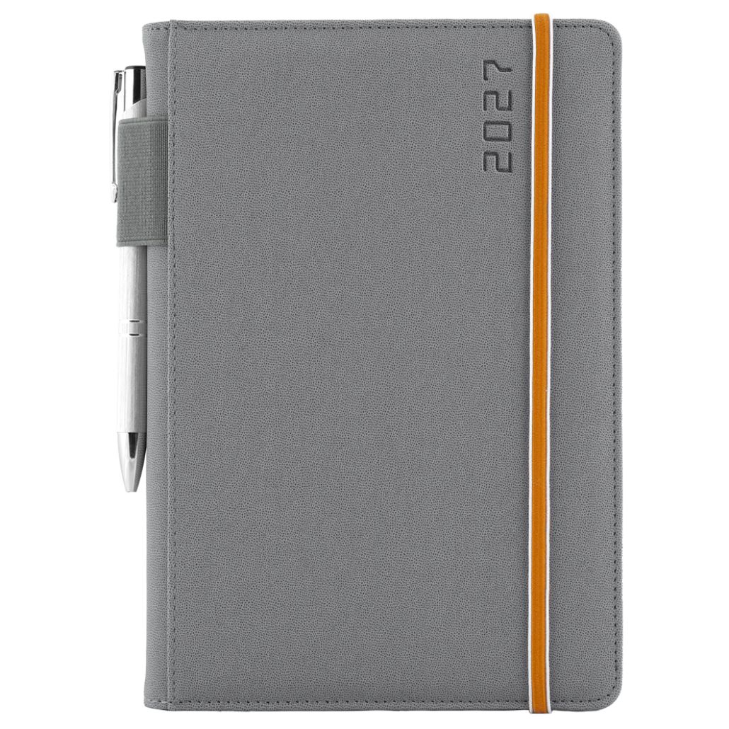 Kalendarz książkowy AMOS tygodniowy A5 2027 czeski - szary/pomarańczowa gumka