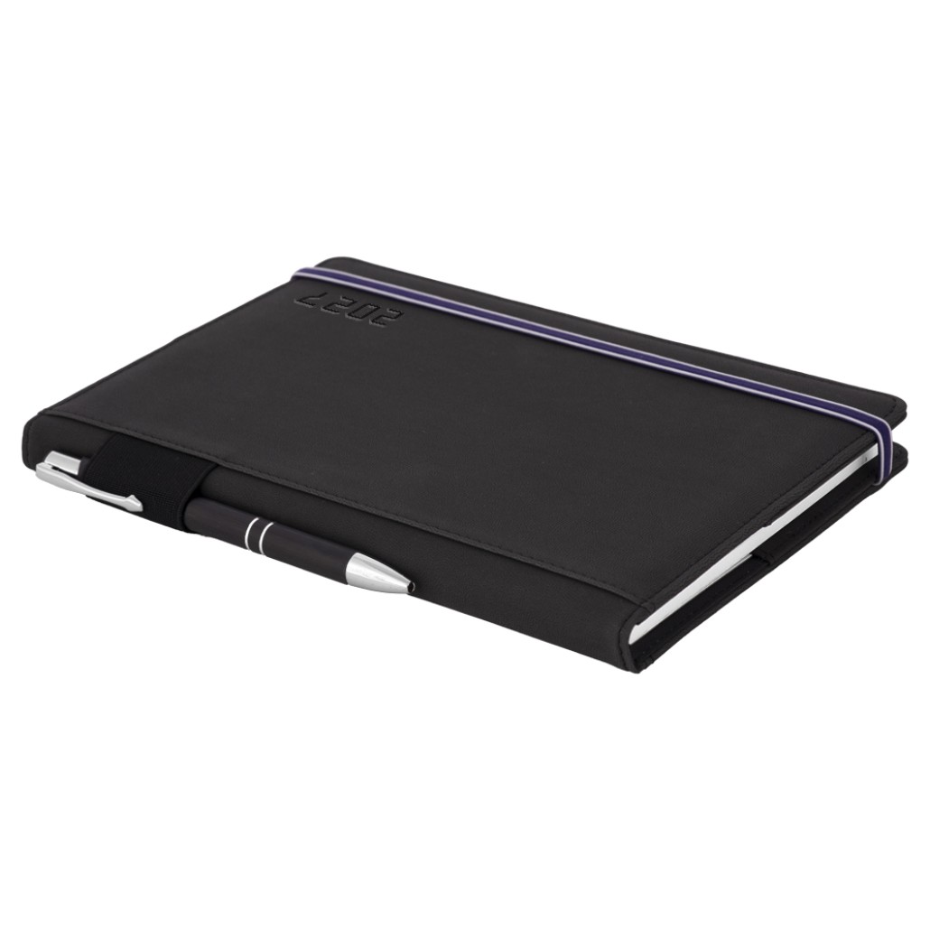 Kalendarz książkowy AMOS tygodniowy A5 2027 polski - czarny/niebieska gumka
