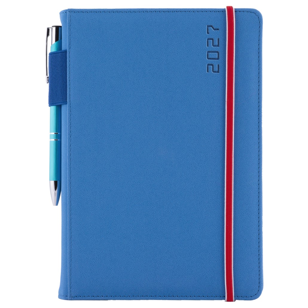 Kalendarz książkowy AMOS tygodniowy A5 2027 słowacki?? - niebieski/czerwona gumka