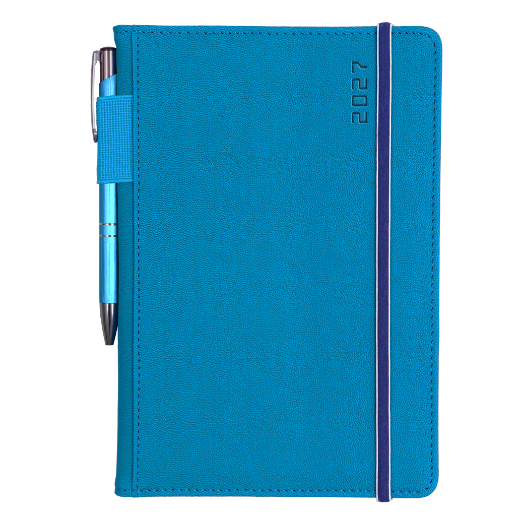 Kalendarz książkowy AMOS tygodniowy A5 2027 słowacki?? - niebieski/granatowa gumka