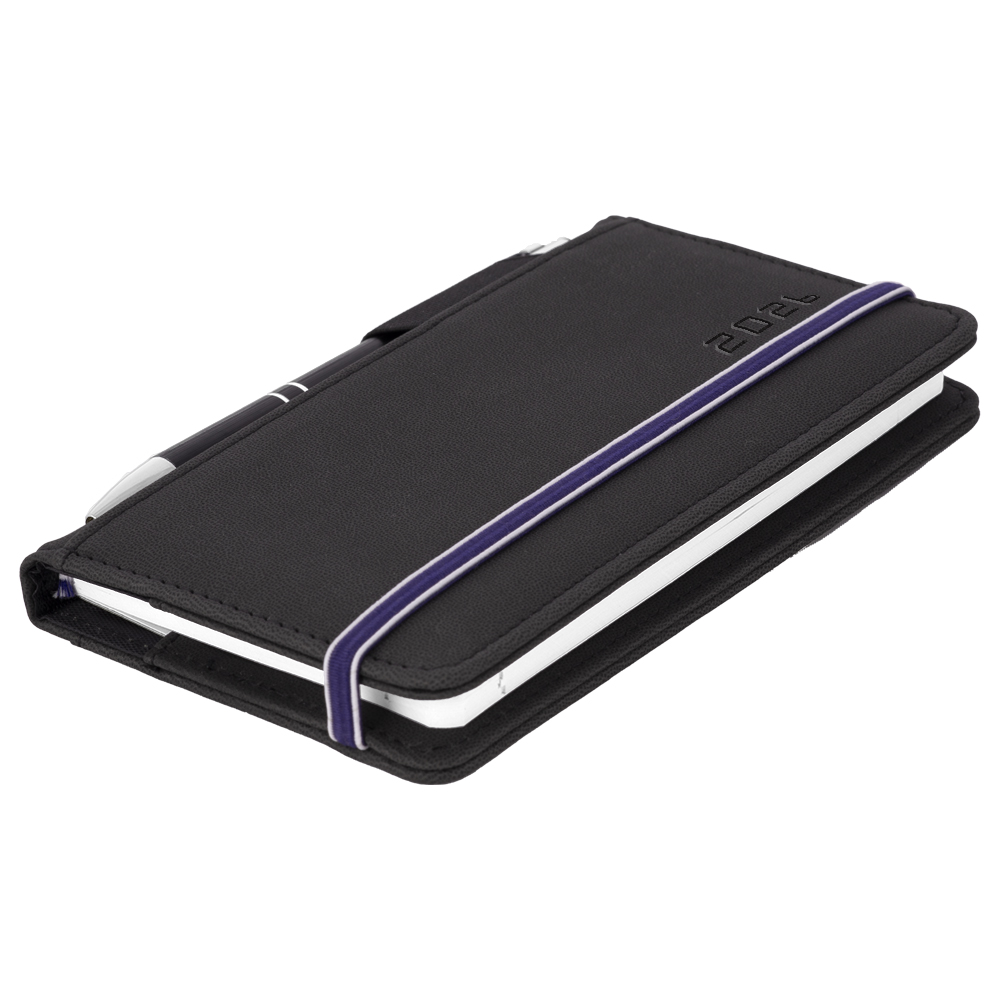 Kalendarz książkowy AMOS tygodniowy kieszonkowy 2026 polski - czarny/niebieska gumka
