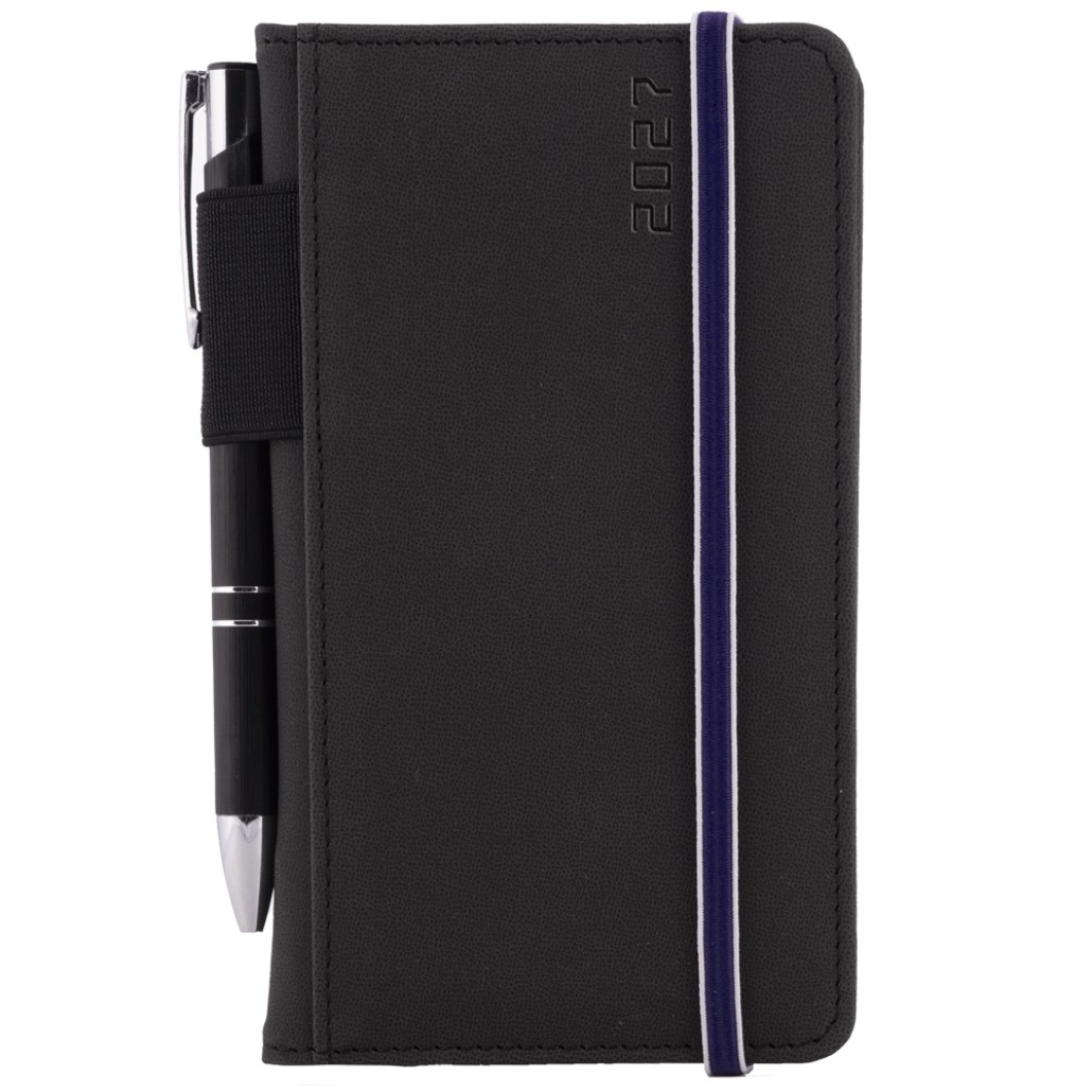 Kalendarz książkowy AMOS tygodniowy kieszonkowy 2027 słowacki?? - czarny/niebieska gumka
