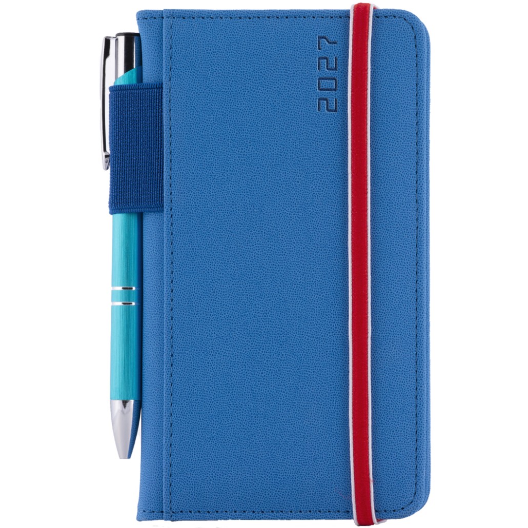 Kalendarz książkowy AMOS tygodniowy kieszonkowy 2027 słowacki?? - niebieski/czerwona gumka
